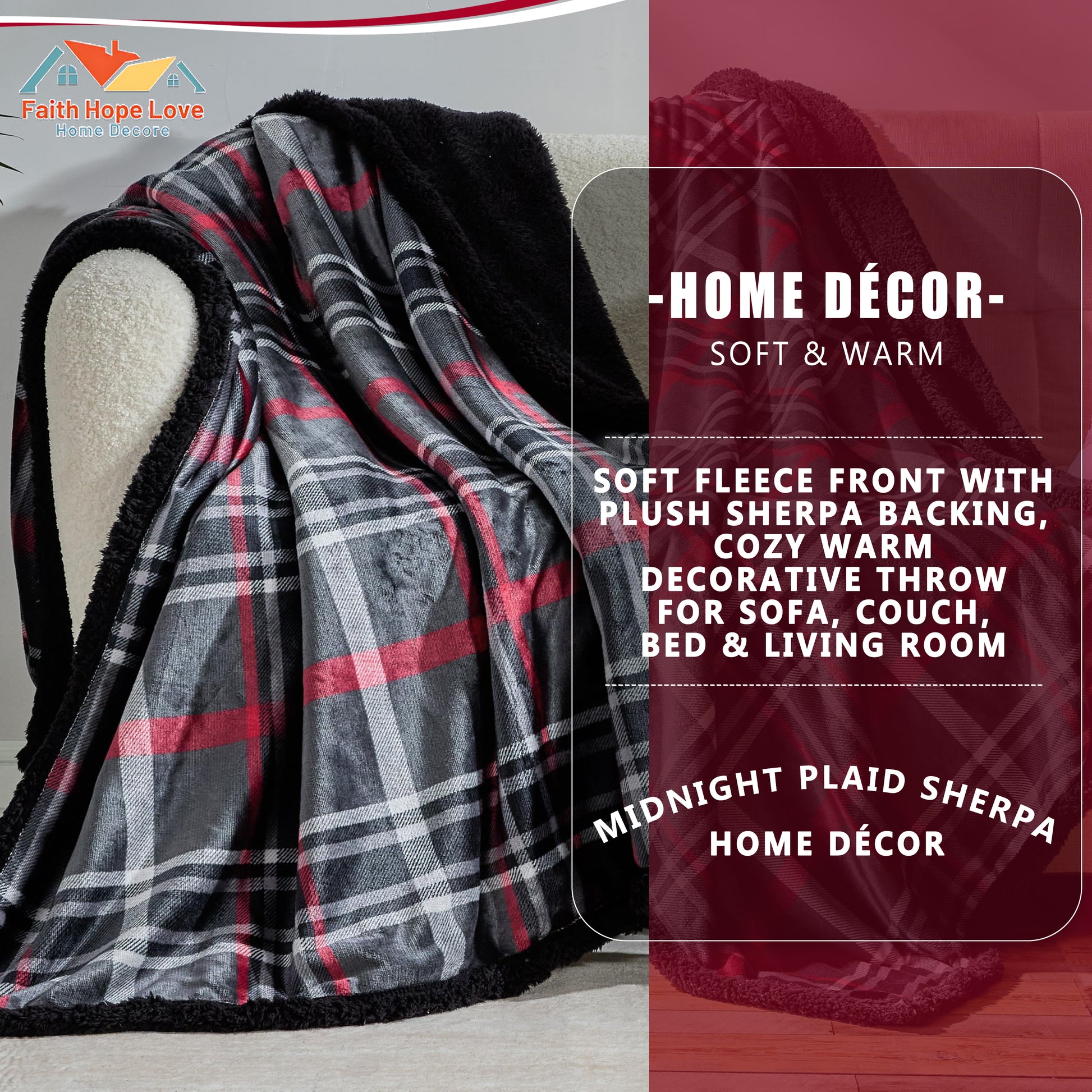 FAITH, HOPE, LOVE HOME DÉCOR Midnight Plaid Sherpa Throw Blanket 50 x 60 Inches – Soft Fleece Front with Plush Sherpa Backing, Cozy Warm Decorative Throw for Sofa, Couch, Bed & Living Room