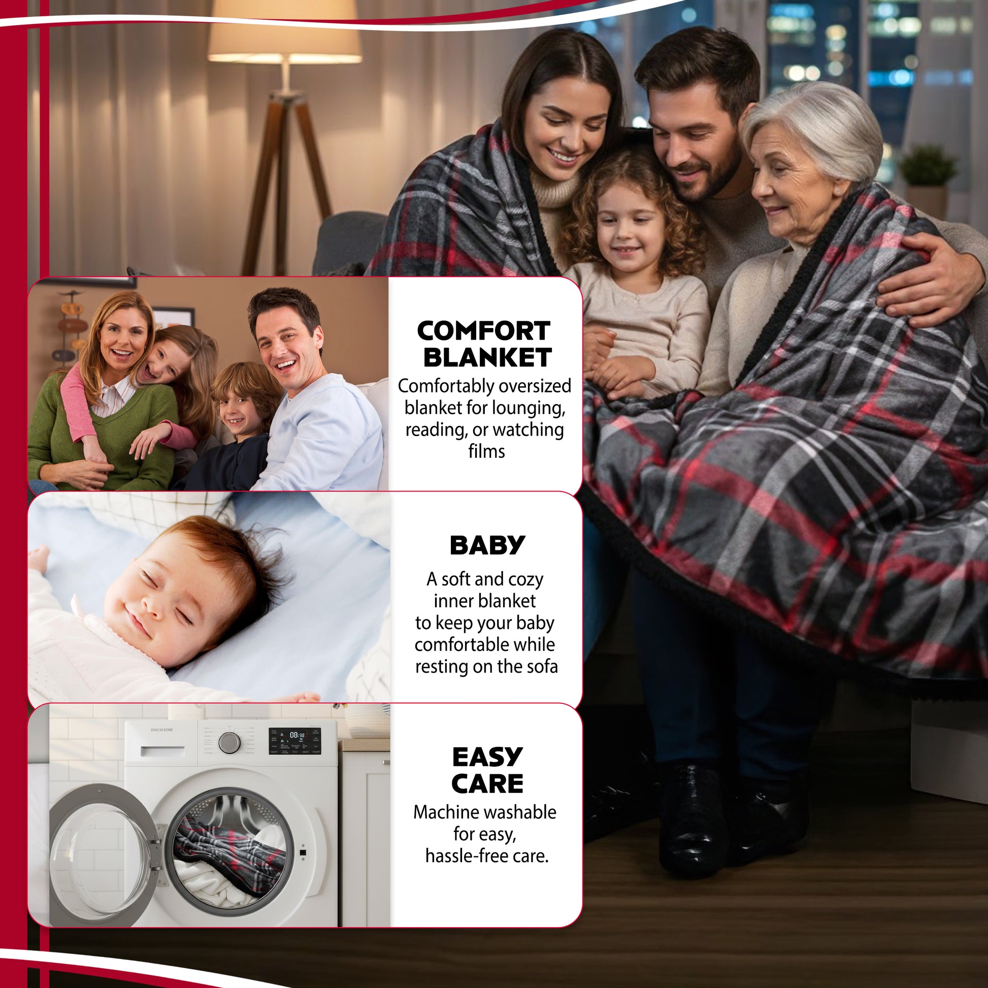 • Luxurious Dual-Layer Comfort – Features a smooth plaid fleece front paired with ultra-soft sherpa backing, providing exceptional warmth, softness, and all-season comfort.