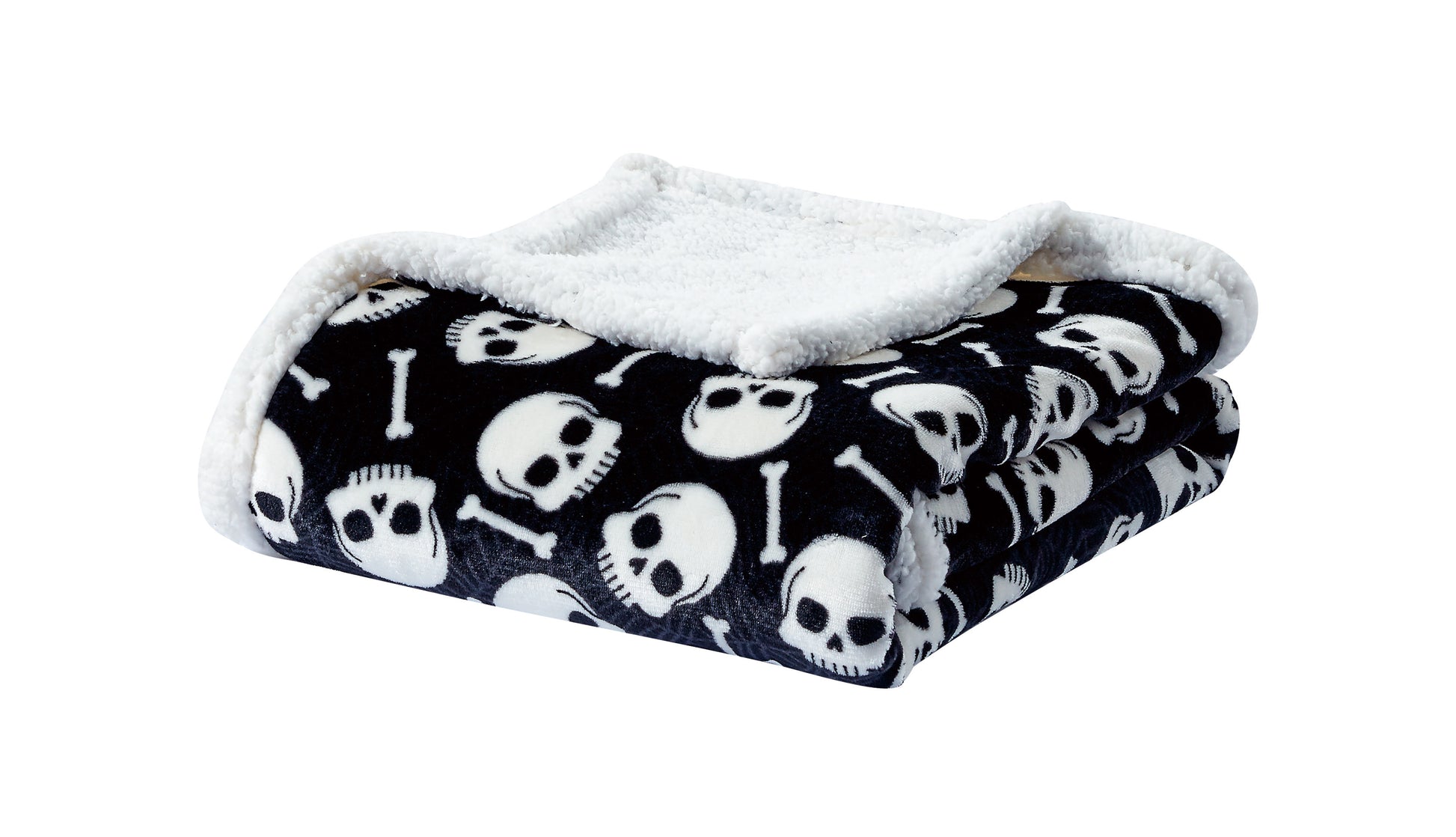 Skull & Bones Black Sherpa Throw Blanket Soft & Cozy Fleece, Gothic Skeleton Design, 50" x 60